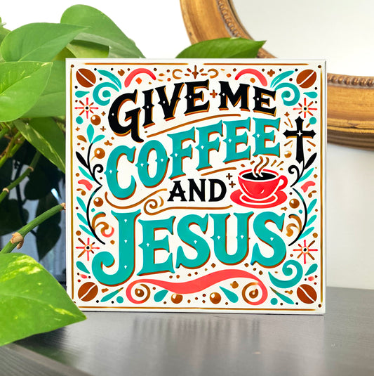 Give me Coffee and Jesus - Small Wooden Block Print - Faith-Inspired Home Decor