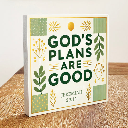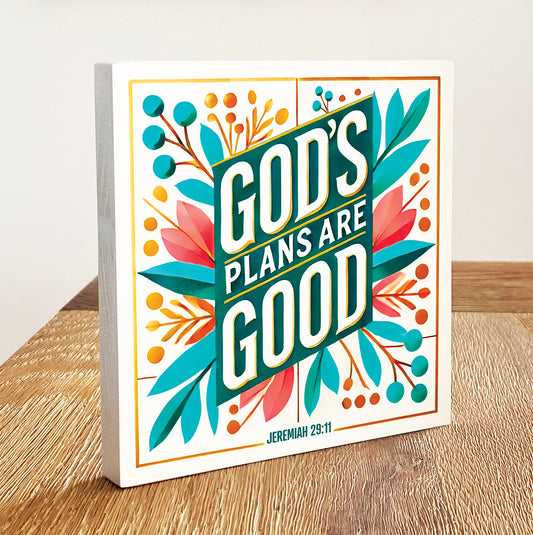 Good's Plans are Good - Decorative Wooden Block With Bible Verses and Faith-Inspired Quotes for Home Decor