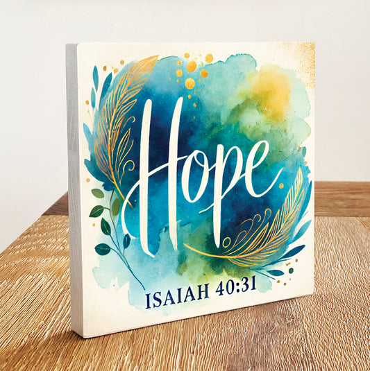 Hope (Isaiah 40:31) - Wooden Block With Bible Verse - Christian Home Decor
