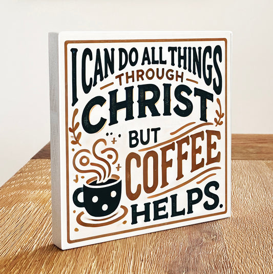 I Can Do All Things Through Christ, But Coffee Helps - Funny Christian Gifts - Wooden Print Home Decor