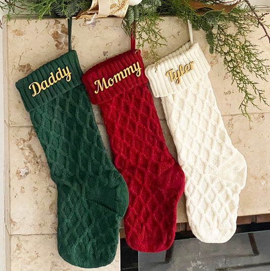 Personalized Christmas Stockings Knitted - Red, Green, White, Gray