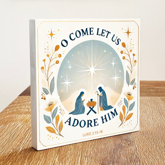 O Come Let Us Adore Him - Christmas Themed Wooden Block - Faith-Inspired Home Decor