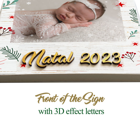 My First Christmas Personalized Wooden Sign with Baby Photo - Unique Gift