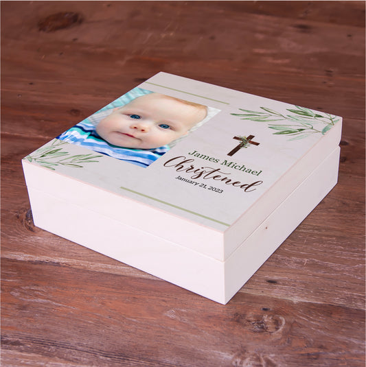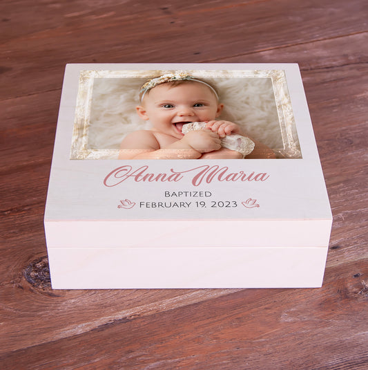 Personalized Baby Baptism Gift - Wooden Keepsake Box Custom Time Capsule