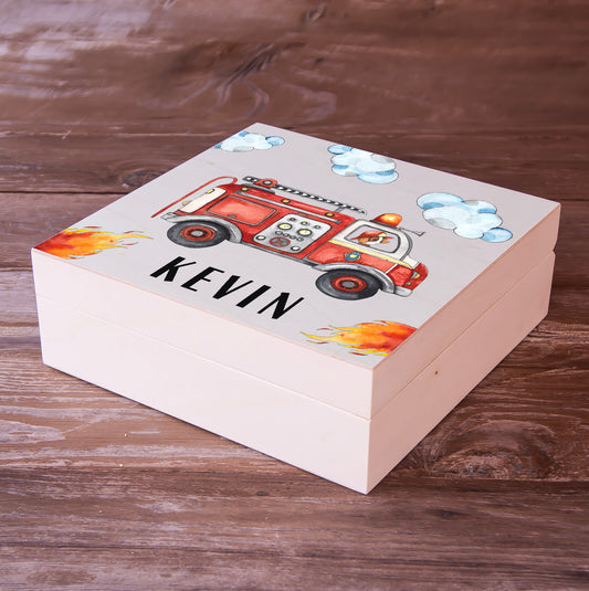 Custom Wooden Memory Box Personalized Gift - Firefighter Themed