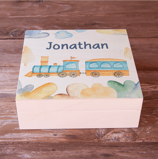 Custom Wooden Memory Box Personalized Gift - Trains Themed