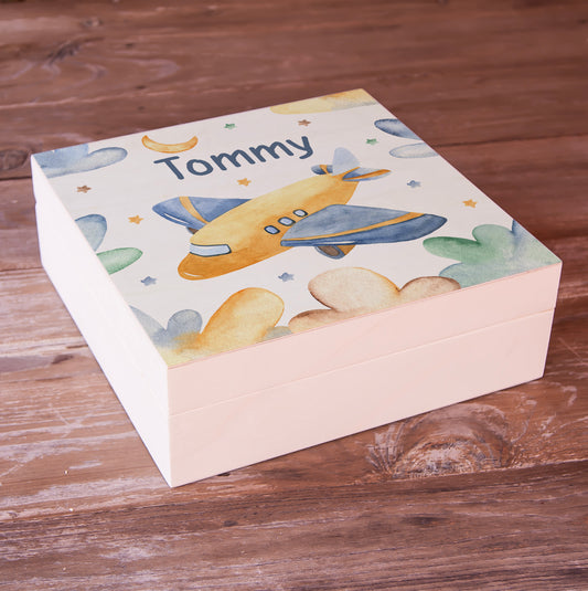 Custom Wooden Memory Box Personalized Gift - Planes Themed