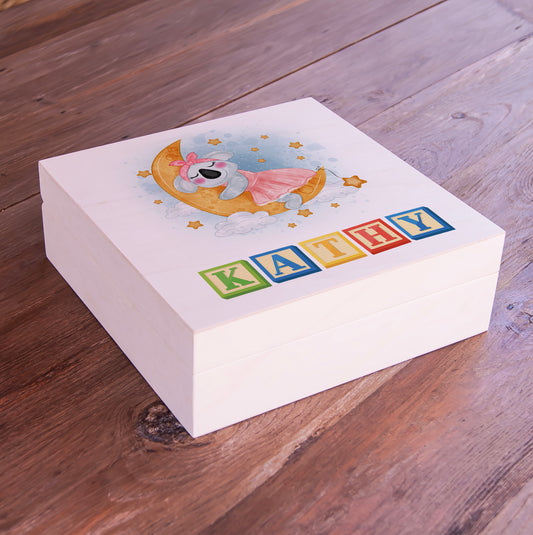 Custom Wooden Memory Box for Girl Personalized Baby Name Gift - Koala Themed