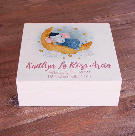 Custom Wooden Memory Box for Girl or Boy - Personalized Baby Gift - Elephant Themed