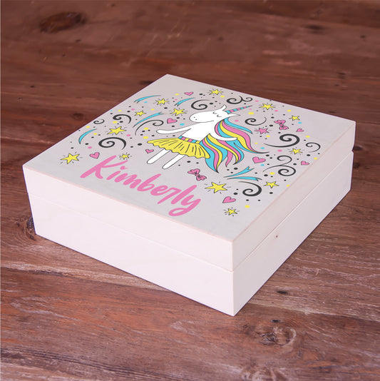 Custom Wooden Memory Box for Girl Personalized Baby Name Gift - Unicorn Themed