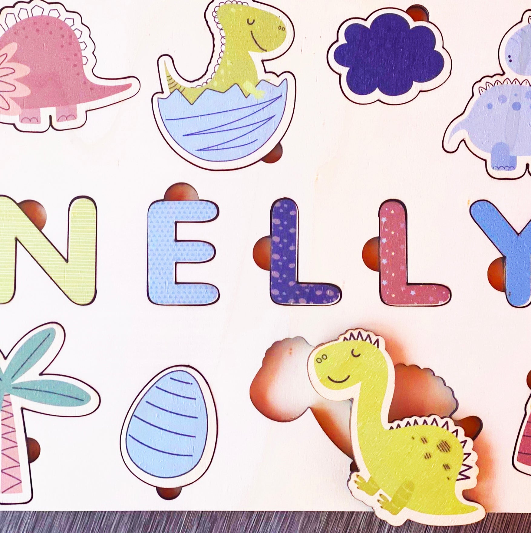 Nosso quebra-cabeça de nomes personalizados para crianças é o presente perfeito para um menino ou menina. Mostre seu amor com este lindo quebra-cabeça temático de Dino - será um presente único e especial que eles vão adorar e lembrar. Perfeito para o aprendizado precoce, este quebra-cabeça personalizado certamente incentivará o reconhecimento de nomes e desenvolverá habilidades motoras.